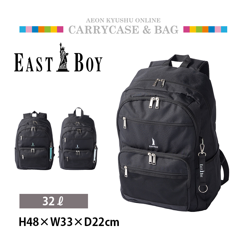 EASTBOY イーストボーイ チャーム付きラウンドリュック ブラック(ホワイトロゴ)