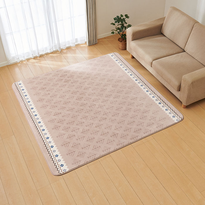 ホームコーディ 洗える フランネルラグ ベージュ 185×185cm