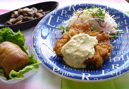チキン南蛮1枚、若鶏炭火焼120g×1、がんこ炭火焼120g×1、肉巻おにぎり120gup×2