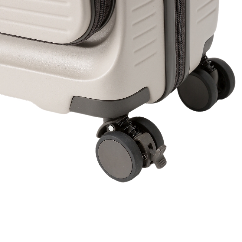 キャスターにはストッパーが装備されています。急な坂道や滑りやすい場所でもキャリーケースが安定して止まります。