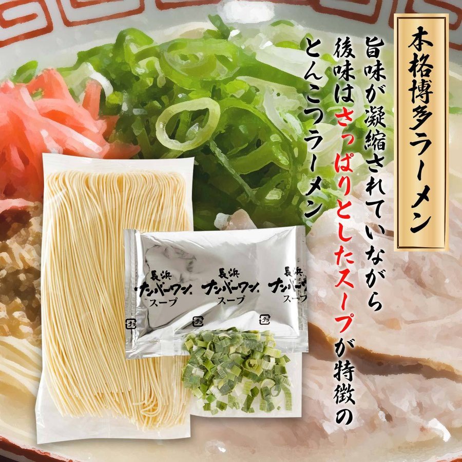 「長浜ナンバーワン」【麺】小麦粉(国内製造)、食塩/酒精、かんすい【スープ】畜肉エキス(国内製造)、豚脂、たん白加水分解物、しょうゆ、砂糖、食塩、ゼラチン、香辛料、昆布エキス、酵母エキス/調味料(アミノ酸等)、酒精、増粘剤(グアーガム)、アルギン酸ナトリウム、タラガム、キサンタンガム 【かやく】ねぎ(中国産)「名島亭」【麺】小麦粉(国内製造)、食塩、卵白/酒精、かんすい、クチナシ色素【スープ】畜肉エキス(国内製造)、豚脂、食塩、しょうゆ、ゼラチン、にんにくペースト/酒精、調味料(アミノ酸等)、増粘剤(グアーガム)、カラメル色素、香料【かやく】ねぎ(中国産)「赤のれん」【麺】小麦粉(国内製造)、食塩/増粘剤(加工デンプン)、酒精、かんすい、クチナシ色素【スープ】ポークエキス(国内製造)、豚脂、チキンエキス、しょうゆ、ポーク風味調味料、香辛料、食塩、ゼラチン、たん白加水分解物、いわし煮干し/調味料(アミノ酸等)、酒精、増粘剤(グァーガム)、カラメル色素、香料 【かやく】ねぎ(中国産)