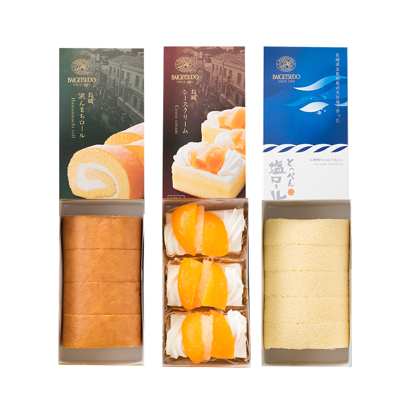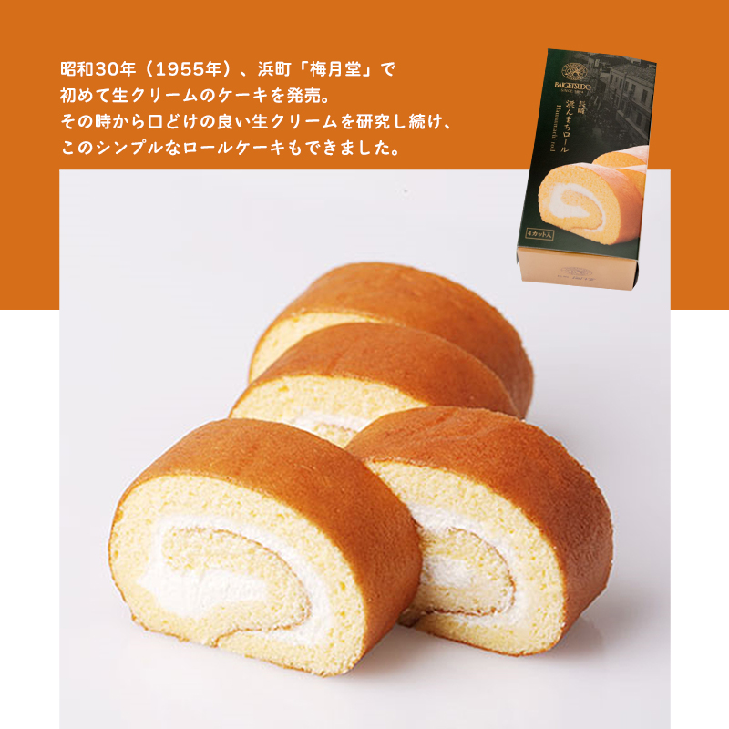 梅月堂のお勧めスイーツ「浜んまちロールケーキ」の詰合せです。