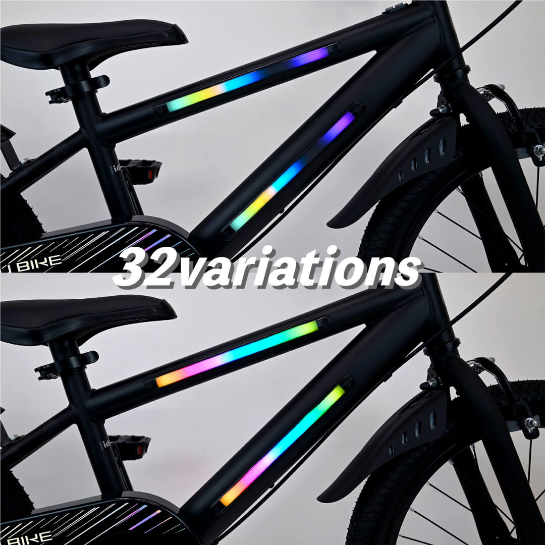 LEDライトがフレームに内蔵され、夜道や公園でも抜群の存在感を発揮し、お子さまの笑顔と安心を守ります。