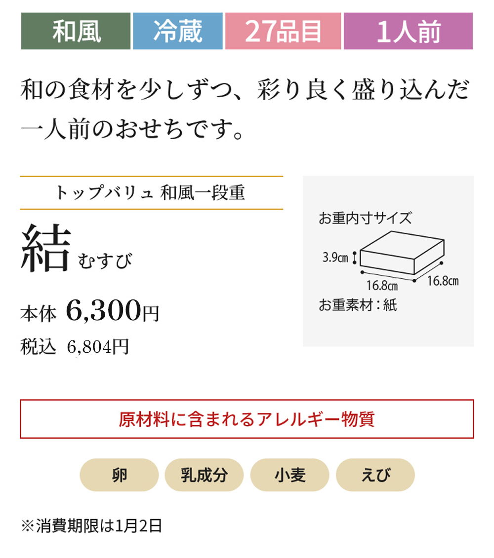 トップバリュ 和風一段重「結」 【店頭受取】 商品番号25osechi4549414212242