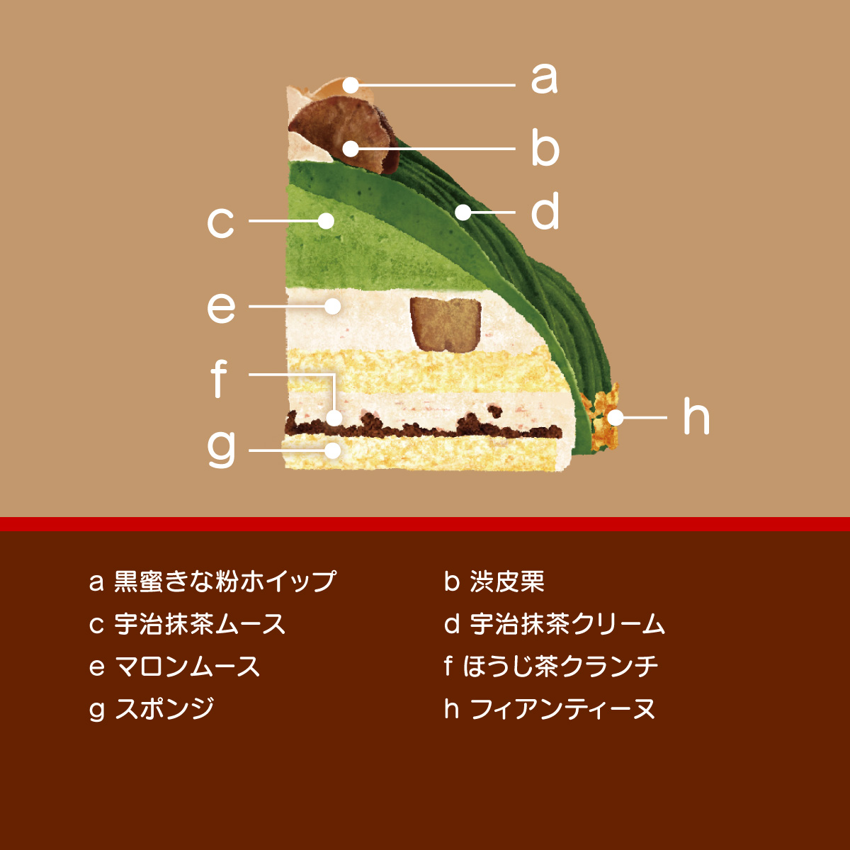 辻利兵衛本店の宇治抹茶を使用した、上品な香りと苦味を楽しめるモンブラン。別添の宇治抹茶パウダーをかけてお召し上がりください。