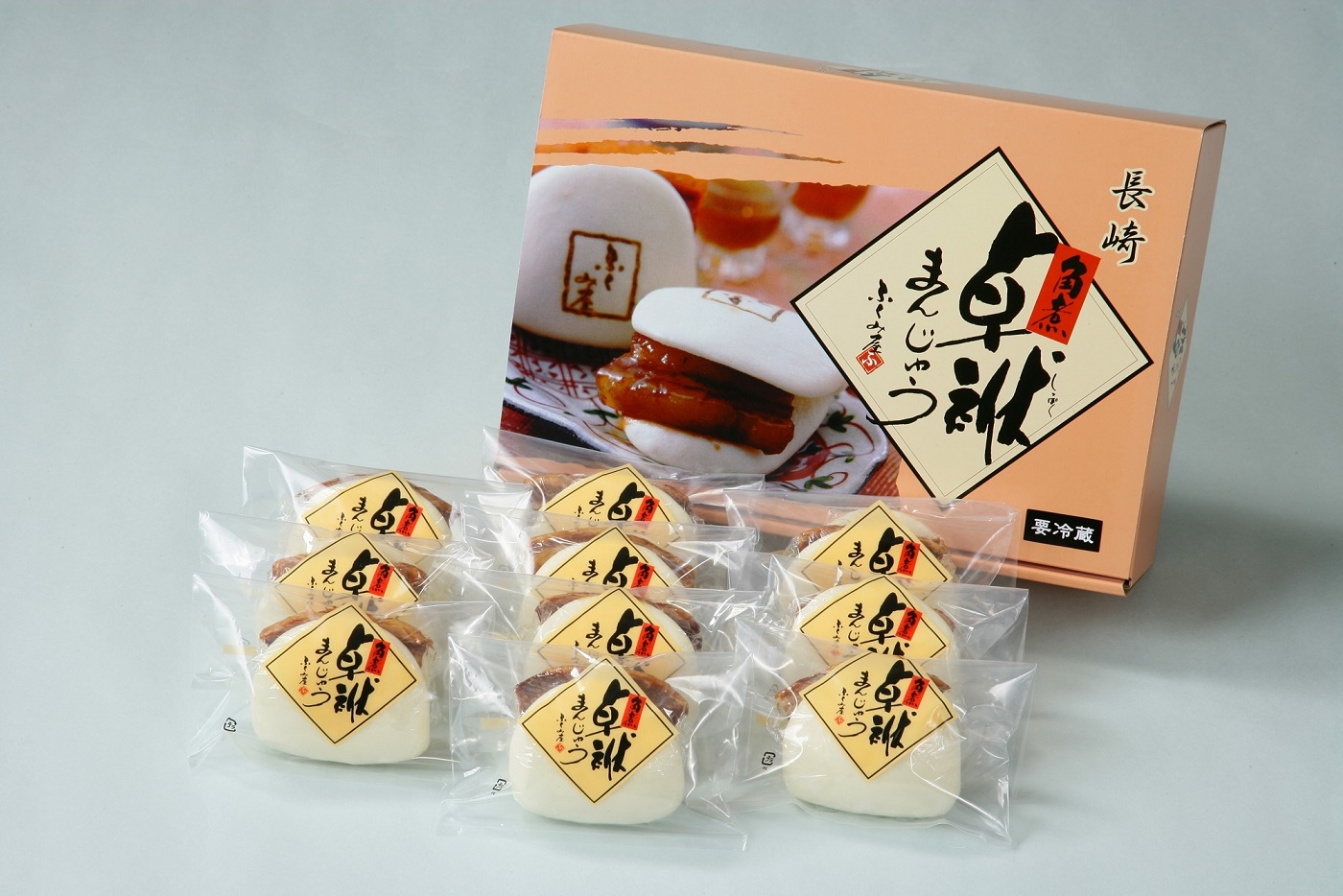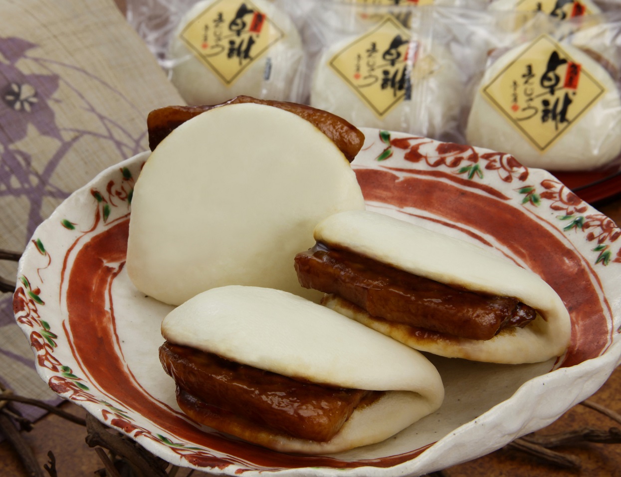長崎独特のフルコース「卓袱料理」のとんぽうろうを、もっと手軽においしく食べられるようにと考案された長崎角煮まんじゅう。長崎の名物品であり人気のお土産です。