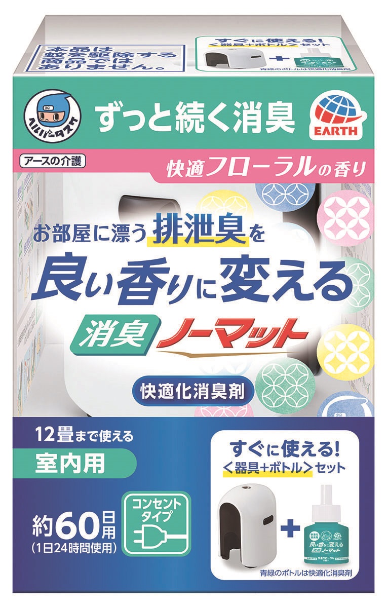 トップ 美容・健康 シニアケア 消臭用品 ヘルパータスケ 良い香りに変える 消臭ノーマット 快適フローラルの香り (納期約2週間) ヘルパータスケ 良い香りに変える 消臭ノーマット 快適フローラルの香り (納期約2週間) 商品番号HCSC001222 スイッチを入れるだけで、部屋中すみずみまで有効成分が広がります 仕様 内容量 器具1個、芳香消臭液ボトル1本(45mL) JANコード 4901080582713