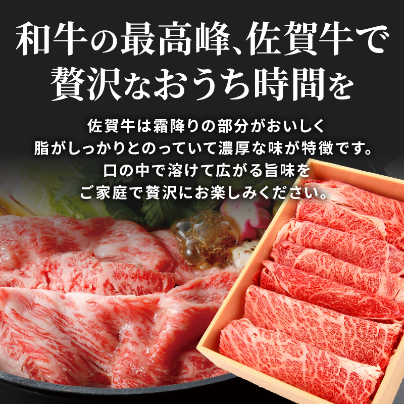 美味しい水と澄み切った空気、佐賀県特有の穏やかな気候の中で育てられた全国屈指のブランド黒毛和種。一眼で上質さがわかる「艶さし」と鮮やかな赤み、舌でとろける贅沢な食感と上品な旨味をご堪能ください。すき焼き、牛しゃぶしゃぶでお召し上がりいただくのがおすすめです。