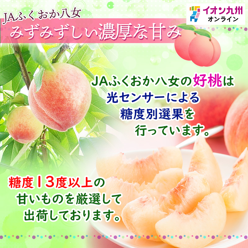 JAふくおか八女の好桃は光センサーによる糖度別選果を行っており、糖度が13度以上の甘くて高品質のものを厳選しております。