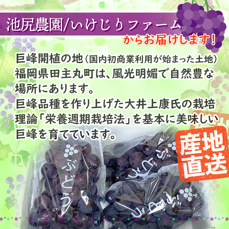 収穫された巨峰の果実は皮の離れが良くエグミ渋みを感じず、口に入れた瞬間に広がる爽やかな風味と芳醇な香りを感じ、長く口の中で余韻の残る美味しさがお楽しみ頂けます。
