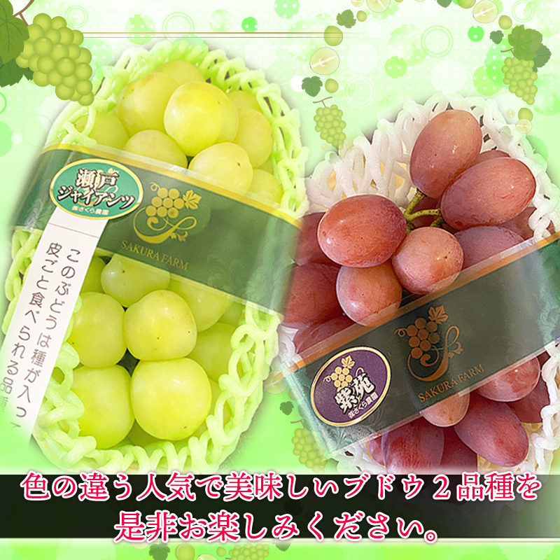 白系ぶどう【瀬戸ジャイアンツ】と赤系ぶどうの【紫苑】の2色セットになります♪