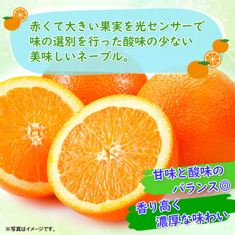 赤くて大きい果実を光センサーで味の選別を行った酸味の少ない美味しいネーブルです。