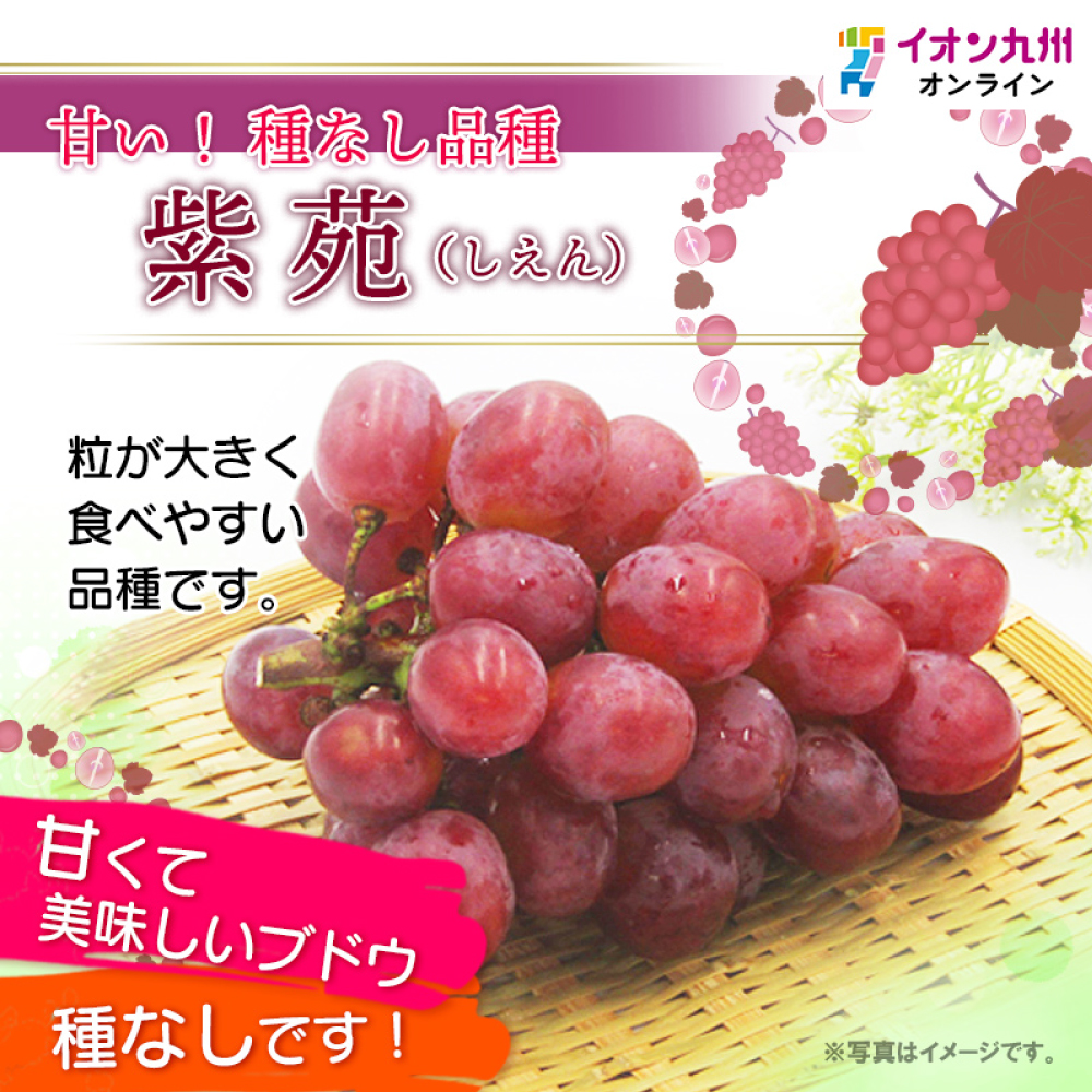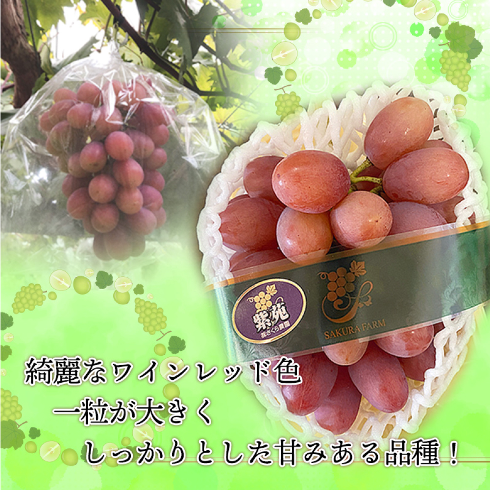 【紫苑】はワインレッド色が綺麗で一粒が大きく、しっかりとした甘みもある人気品種です。