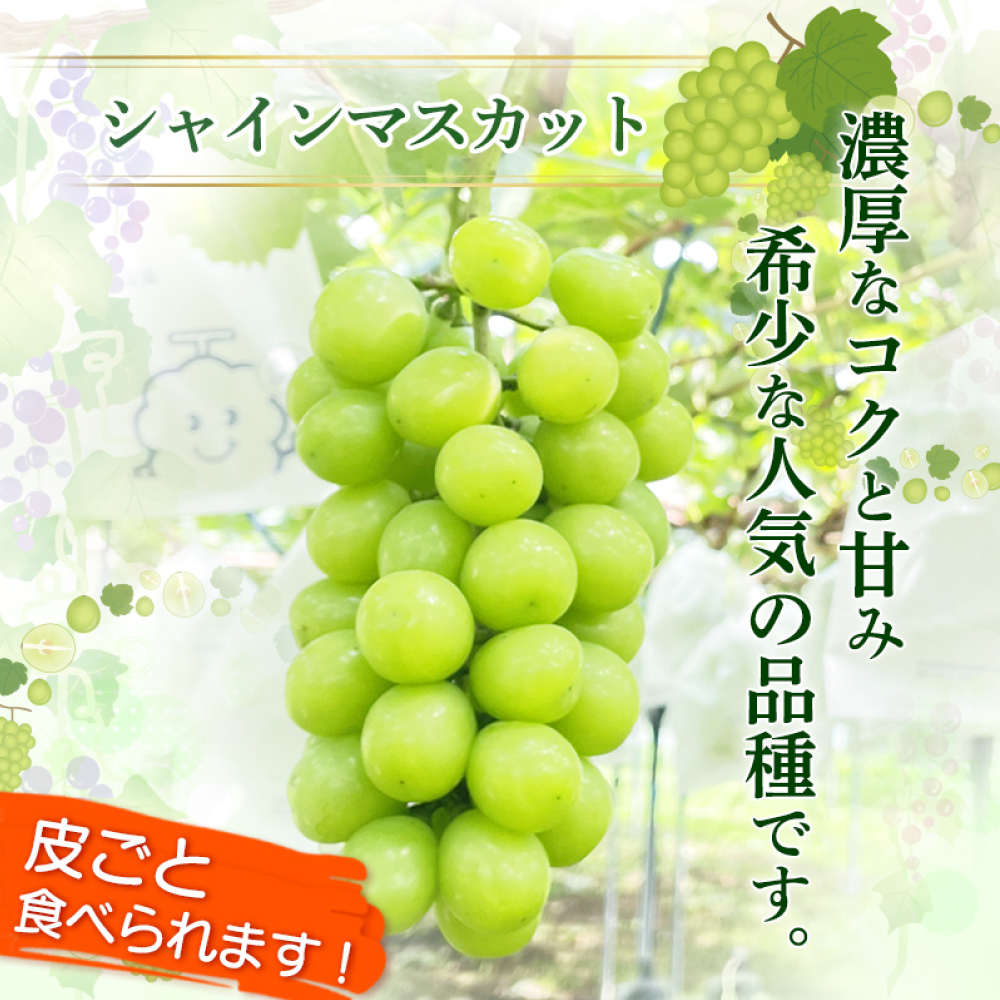 【シャインマスカット】は爽やかな甘みとさくっとした歯ごたえで世代を問わず人気品種です。
