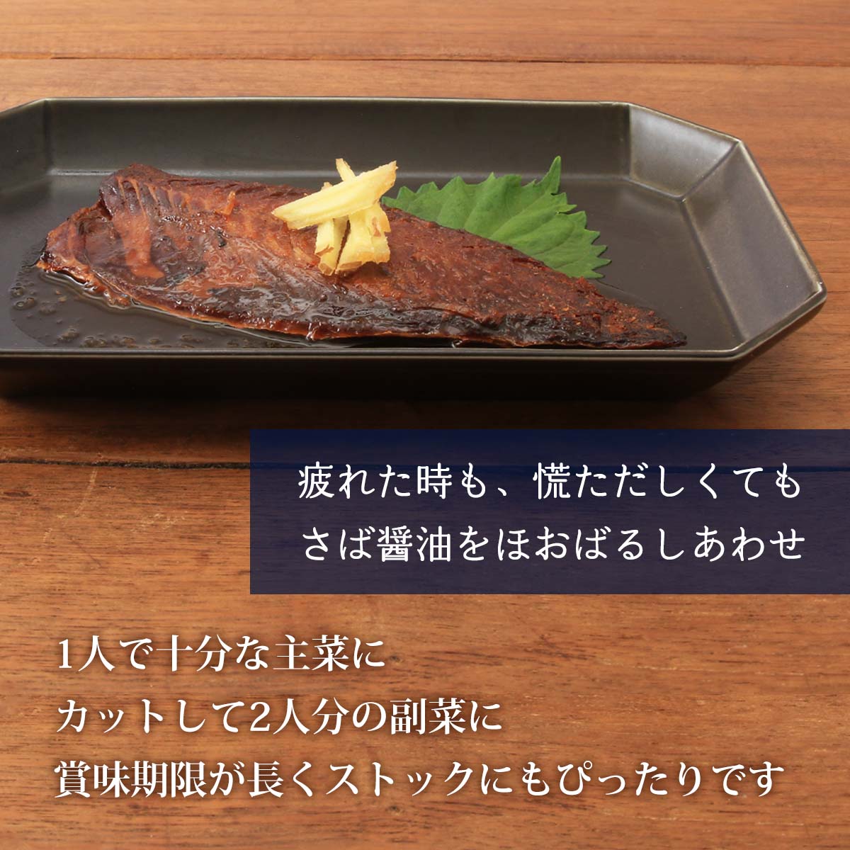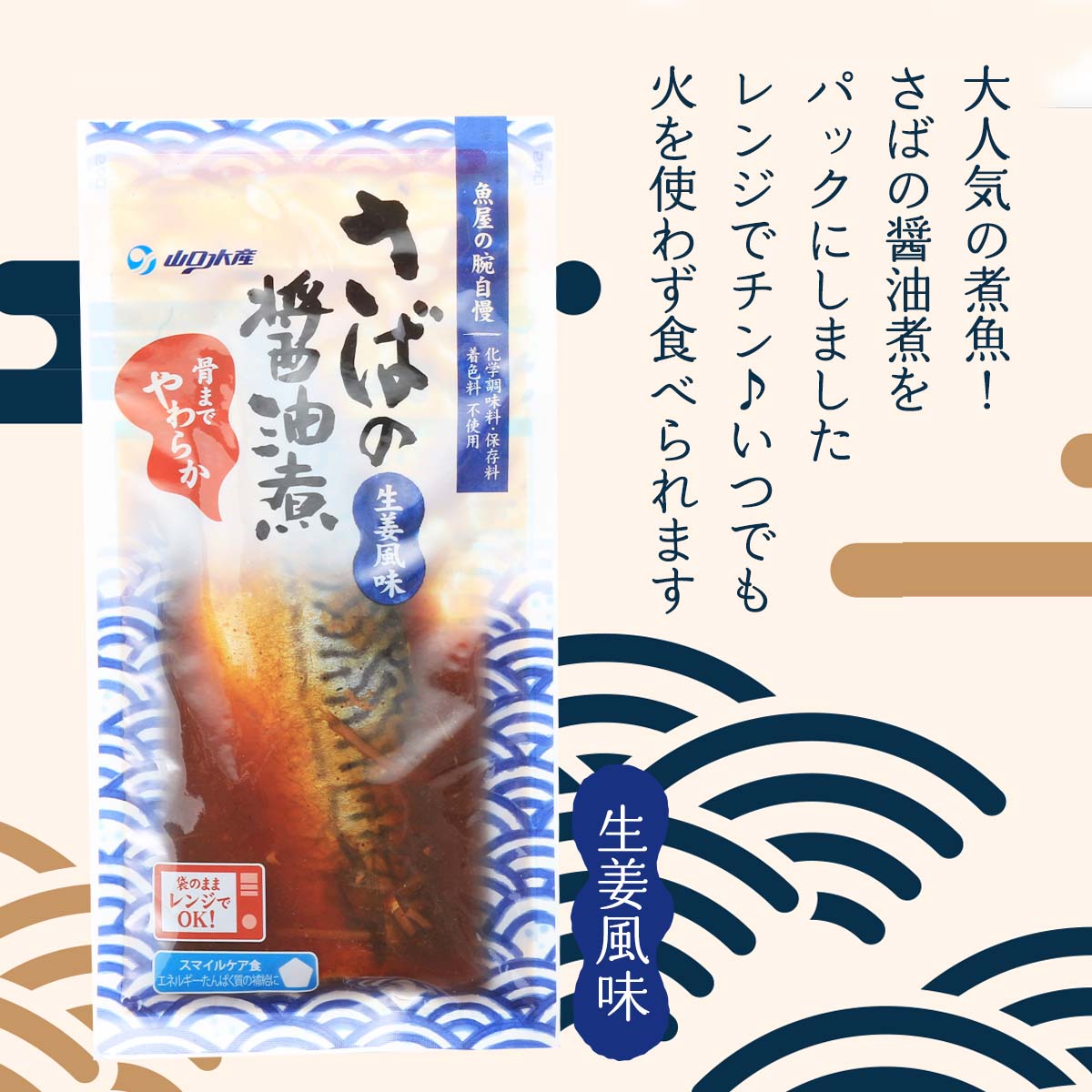 さばを生姜風味に醤油煮しました。脂ののったさばを、あごだし?油で仕立てました。500~600ワットの電子レンジで袋のまま50秒か、もしくは、袋を開けずに熱湯で2分~2分30秒加熱してください。骨までやわらかなさばの醤油煮を手軽に食べることができます。エネルギーやタンパク質の補給に魚屋の腕自慢のさばの醤油煮をぜひご賞味ください。賞味期限が長いので、ローリングストックとしてもお使いいただけます。