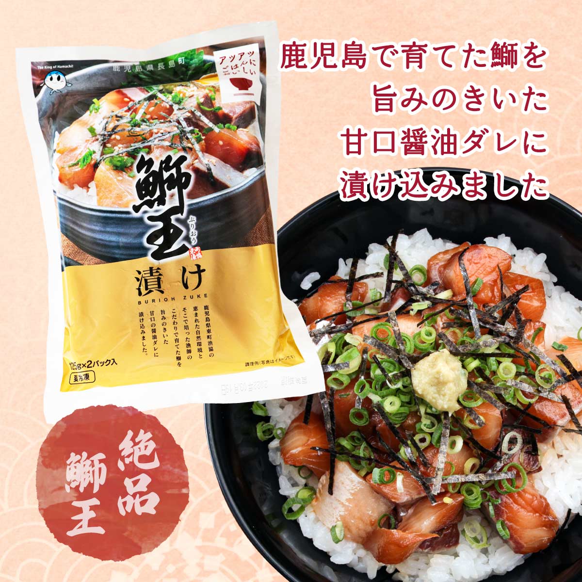 鹿児島県東町漁協の恵まれた自然環境とそこで培った漁師のこだわりで育てた鰤を旨みのきいた甘口醤油ダレに漬け込んだ商品です。