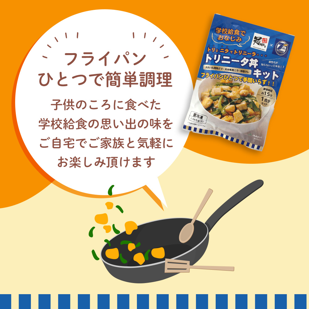 学校給食でお馴染み、子供達に大人気の「おおいた冠地どり」でつくるトリニータ丼のミールキットです。