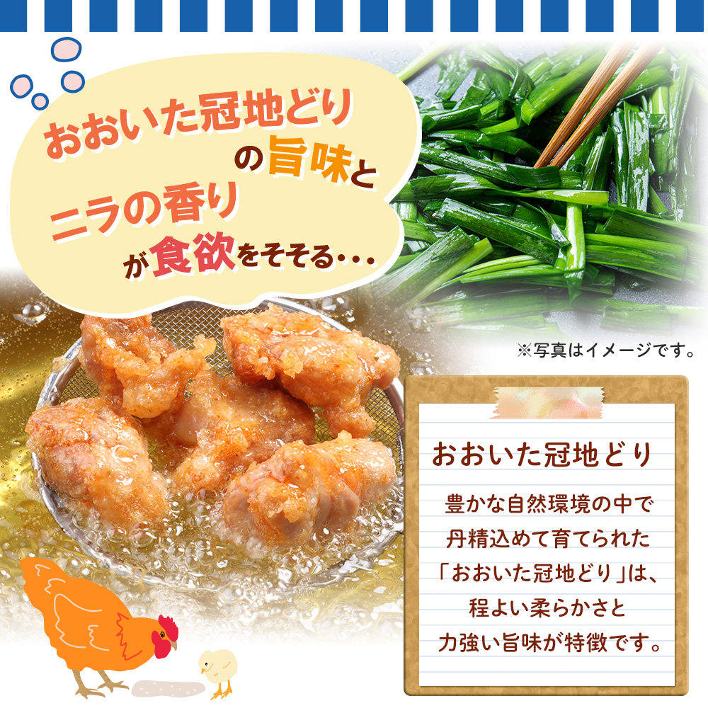 おおいた冠地どりの旨味とニラの香りが食欲をそそります。