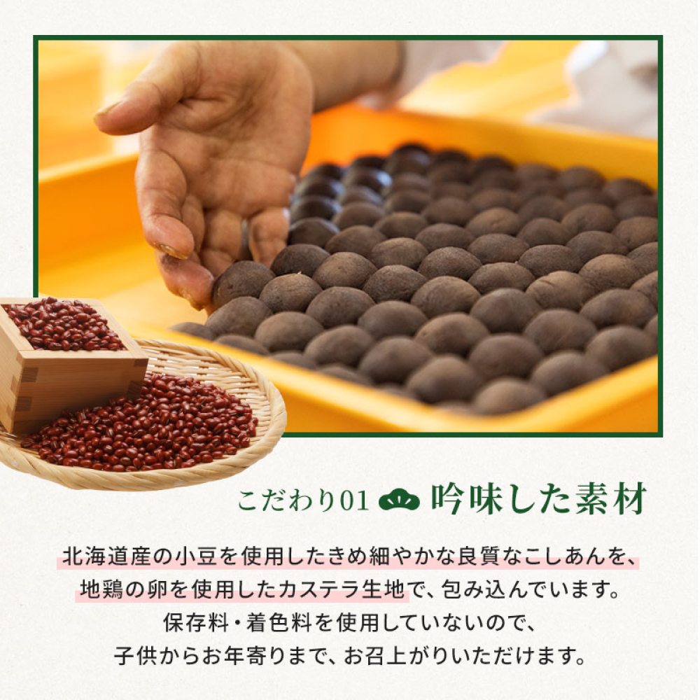 小豆,砂糖,卵,小麦粉,砂糖結合水飴,水飴,酒,蜂蜜/膨張剤