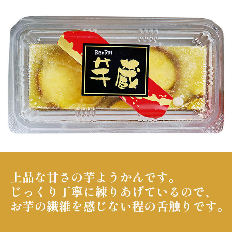 鹿児島産の紅さつまをじっくり時間をかけて柔らかく練り上げ、芋の甘煮を浮かべた程よい甘さの芋ようかんです。