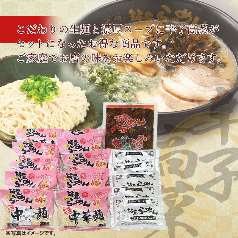 麺100g×10、豚骨スープ80g×5、辛子高菜230g×1