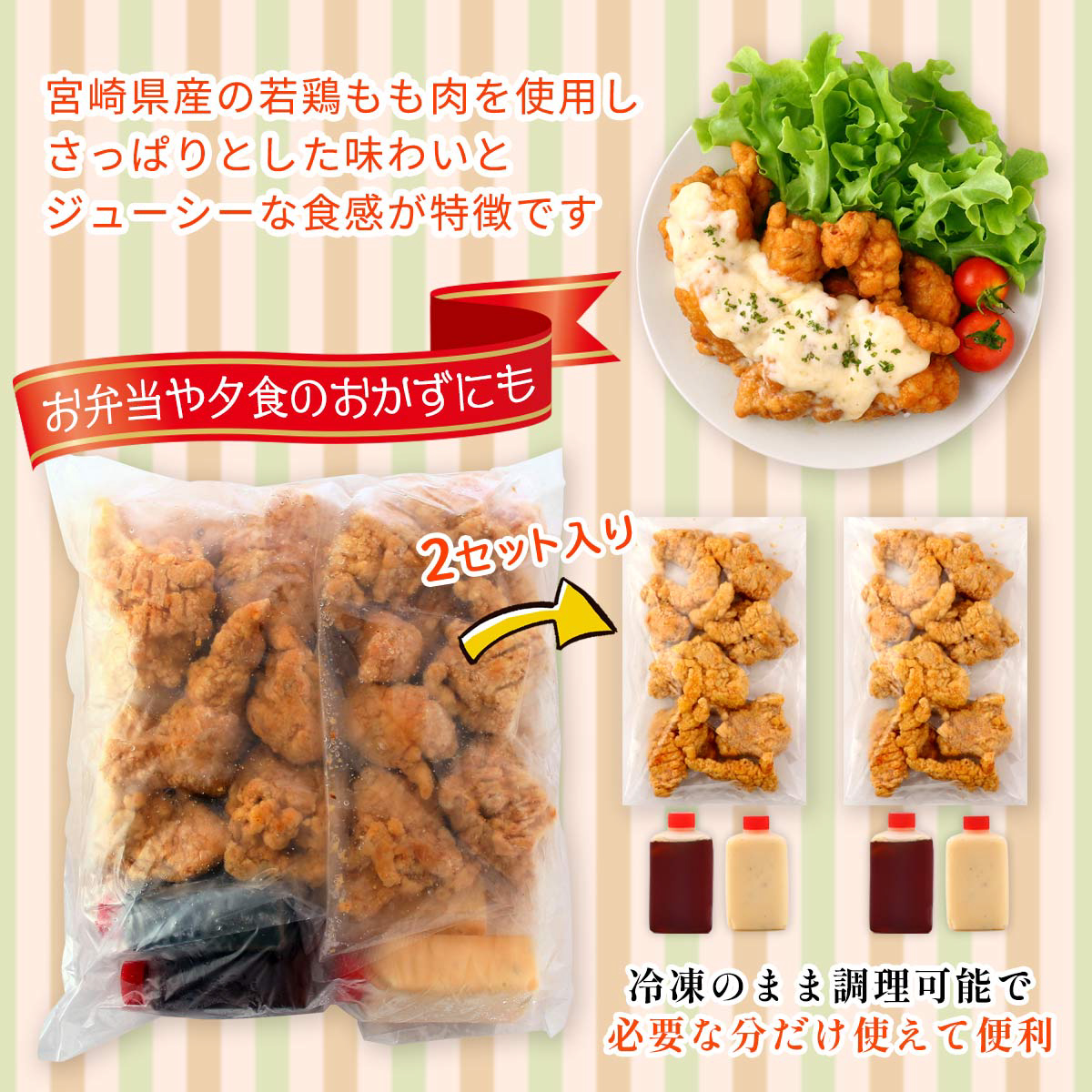 宮崎産若鶏むね肉 ミニチキン南蛮 1kg(鶏フライむね約250g×4個、甘酢80ml×2本、タルタルソース80g×2本) 商品番号KY4562118125489
