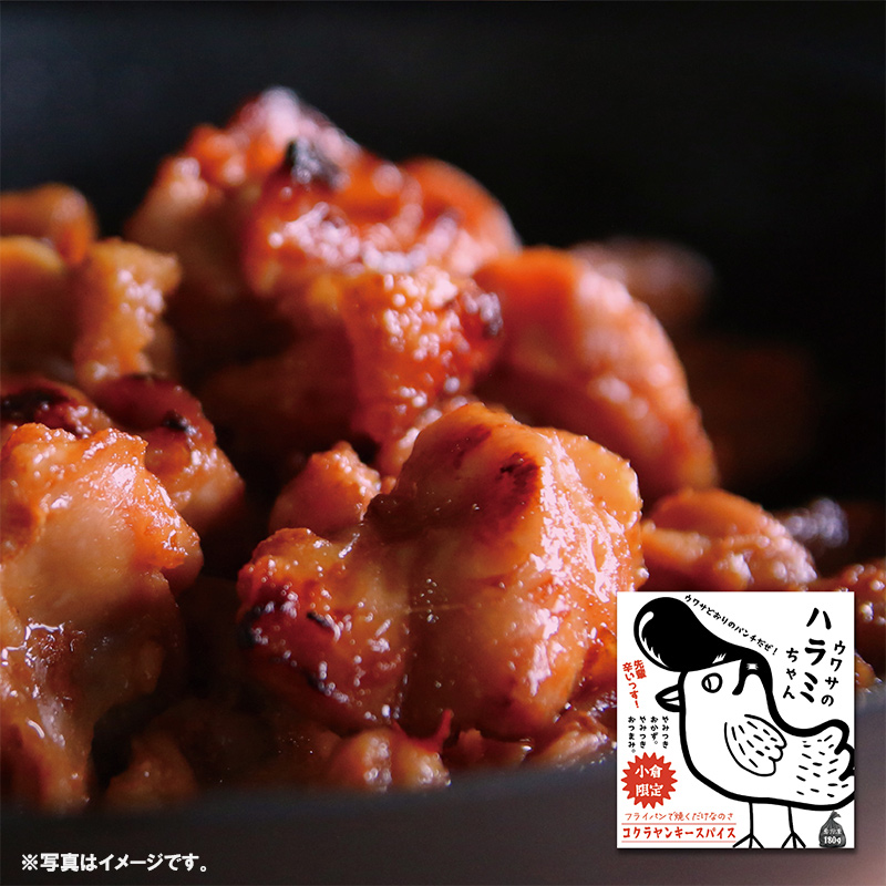 リピ確のクセになるおいしさで大人気の名物ウワサのハラミちゃんシリーズから、お酒がすすみ過ぎる!止まらない!秘伝赤だれを使用した大人のピリ辛味「ウワサのハラミちゃんコクラヤンキースパイス」。国産鶏の中でもさらに希少な部位「1羽から4~8g程度しか取れない」ハラミを使用し、旨味を凝縮したたれに漬け込んだ逸品。フライパンで焼くだけの簡単調理で衝撃の食感と溢れ出す旨味をご堪能いただけます。おかず一品として、おつまみとして、おやつに、お弁当に、プレゼントやおみやげ、贈り物にも喜ばれる「ウワサのハラミちゃん」をお楽しみください。