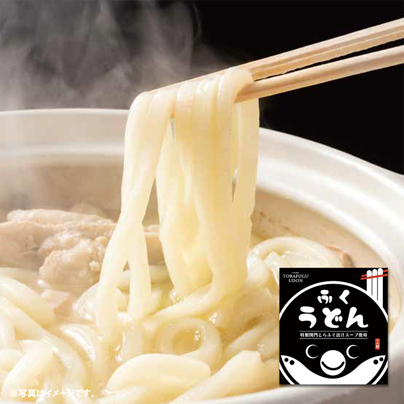 関門海峡の名物「とらふぐ」を贅沢に使用した特製関門とらふぐ出汁つゆと、やわらかなうどん麺のハーモニーが絶品。うどん好きにはたまらない感動のふくうどんを食卓でお楽しみください。