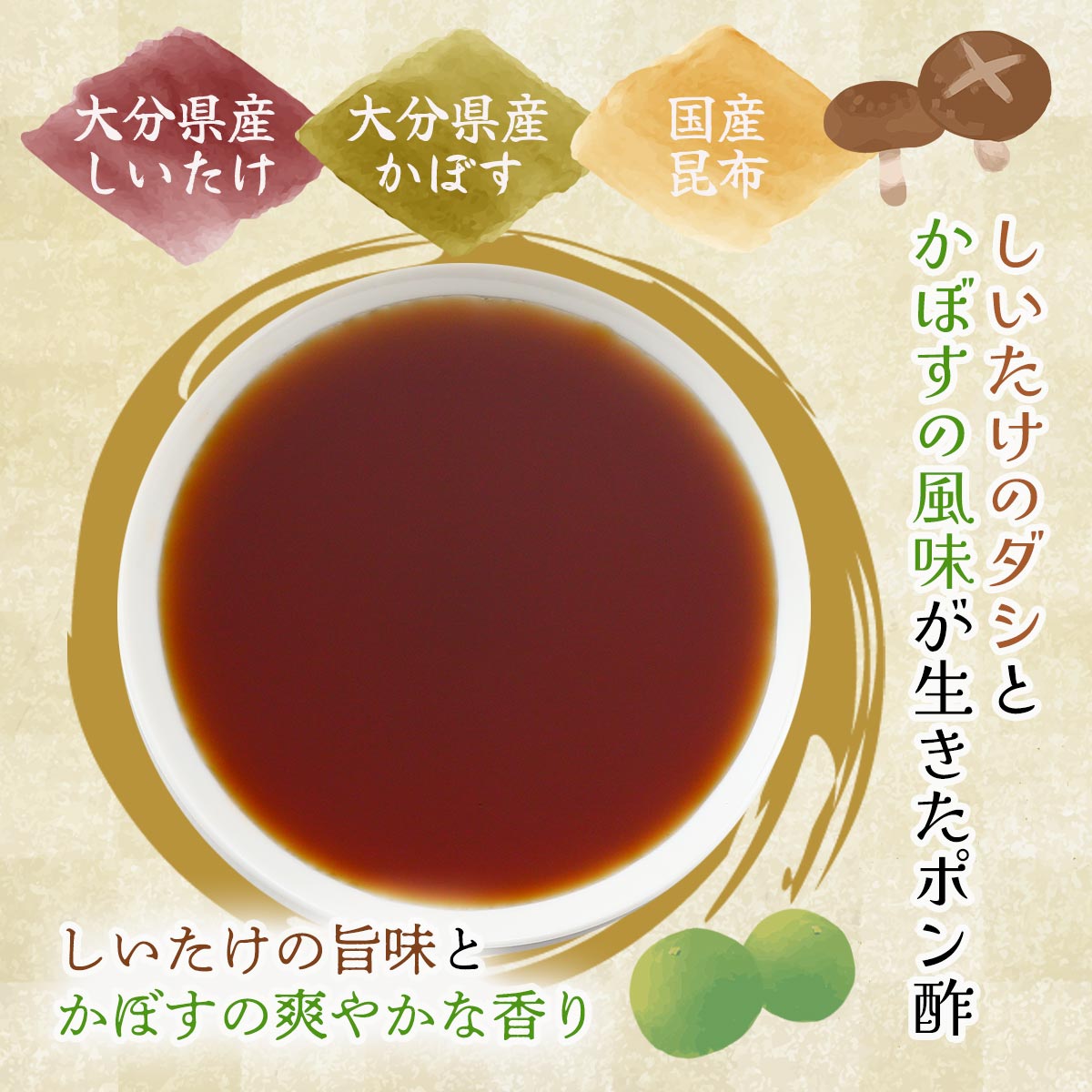 しいたけのダシとかぼすの風味が生きたポン酢です。