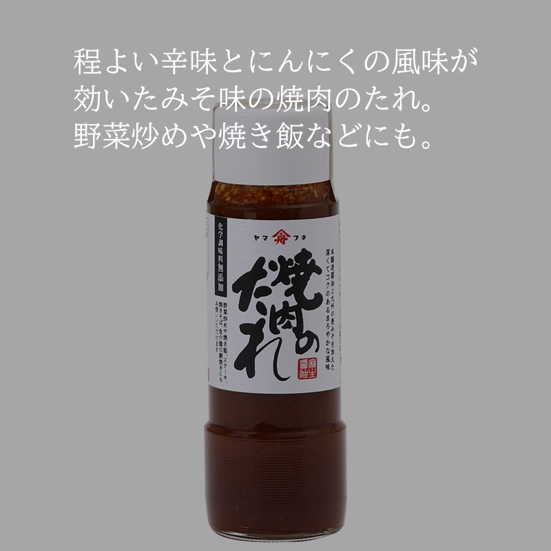 本醸造醤油と麦みそを加えた深くてコクのあるまろやかな風味が特徴の焼肉のたれです。