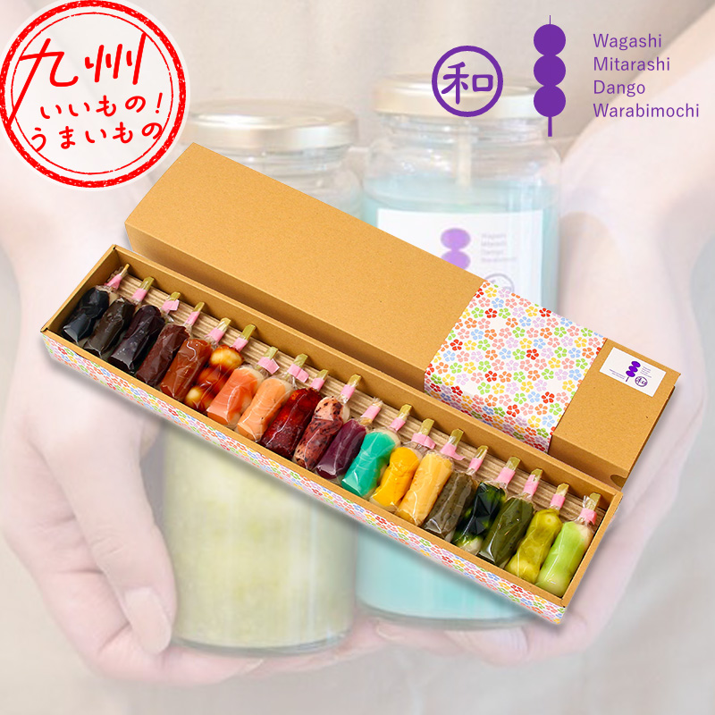 あんこの種類:メロンソーダ・ずんだ・八女抹茶・岩海苔・玉露・レモン・スイートポテト・ラムネ・紫芋・飛梅・鬼辛・さくら・あまおう・みたらし・キャラメル・チョコレート・よもぎつぶ・ほうじ茶・黒ごま