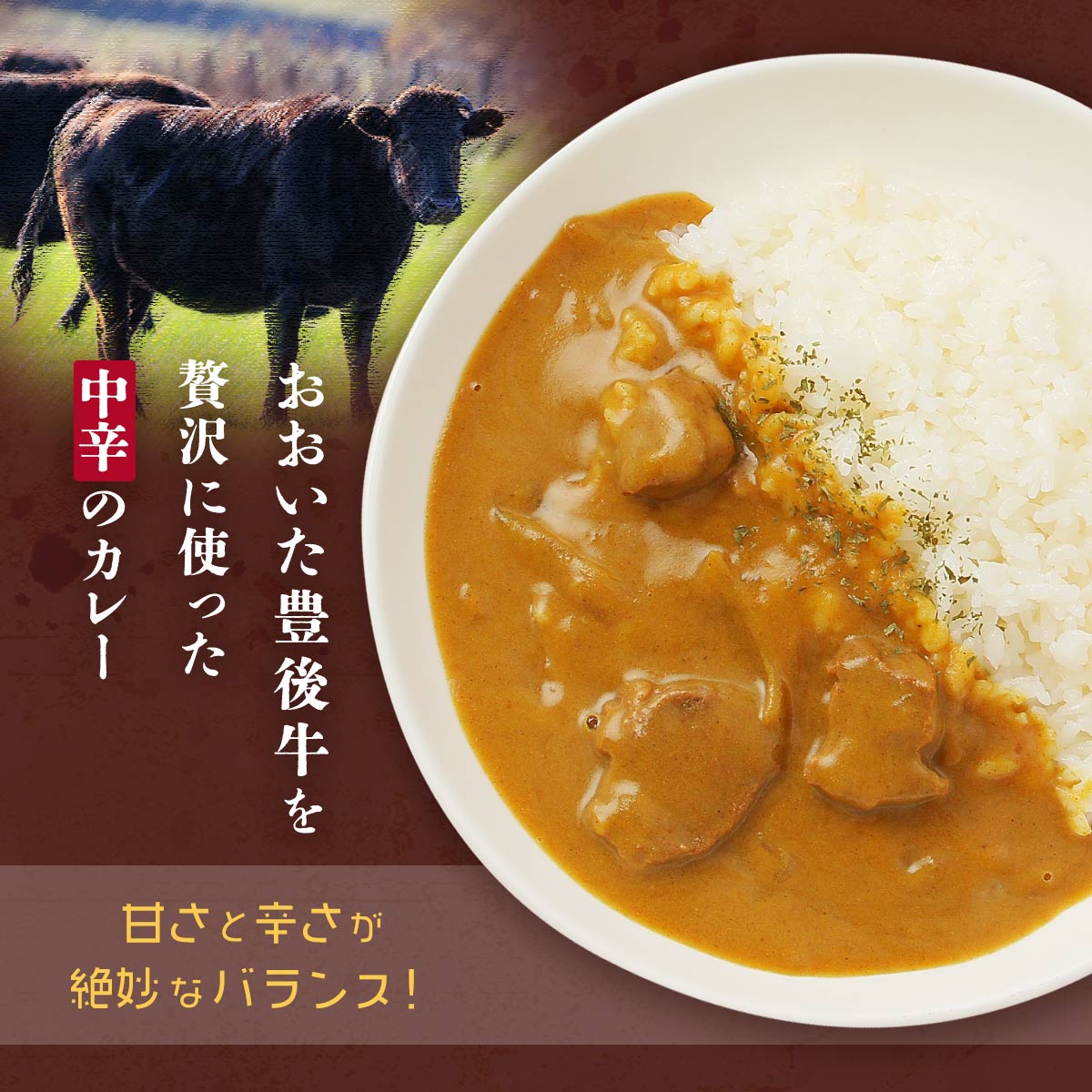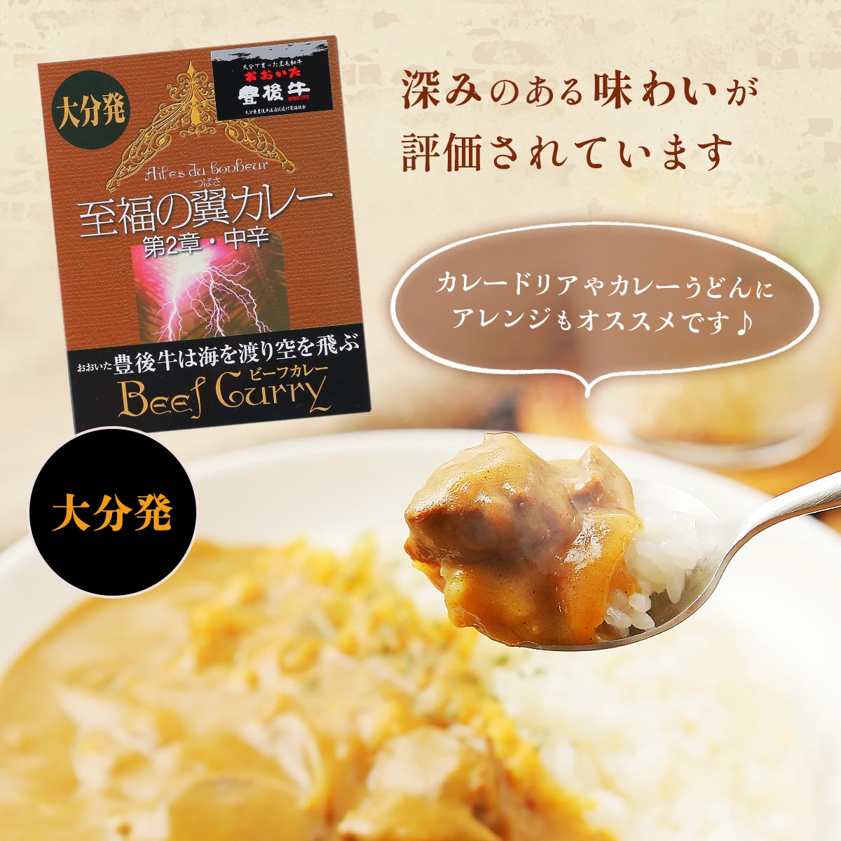豊後牛を贅沢に使った中辛のカレーです。