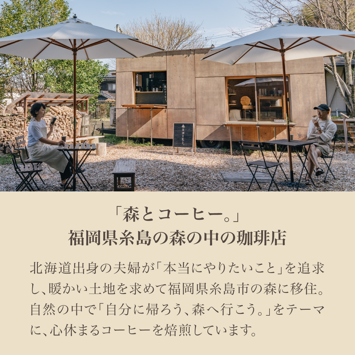 福岡県糸島の森の中の珈琲店「森とコーヒー。」のプレゼントやお土産に使いやすいオリジナルブレンド5個詰め合せ