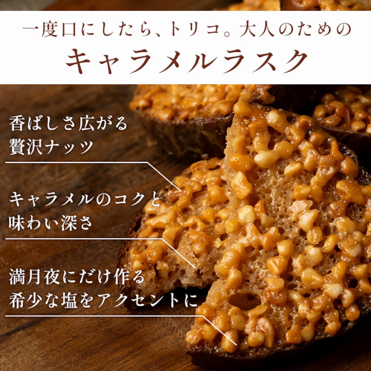 ラスク専用オーブンでラスク職人が丁寧に焼き上げ、贅沢にたっぷりのナッツを。