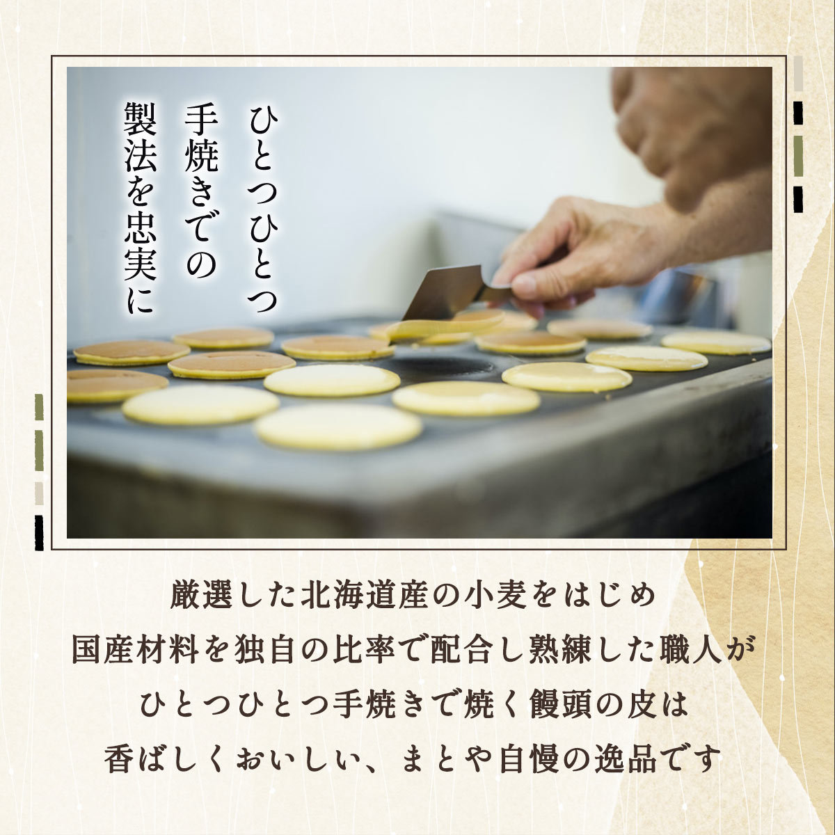 粒餡は北海道産生産者限定十勝小豆を使用、バターは北海道産100%使用。