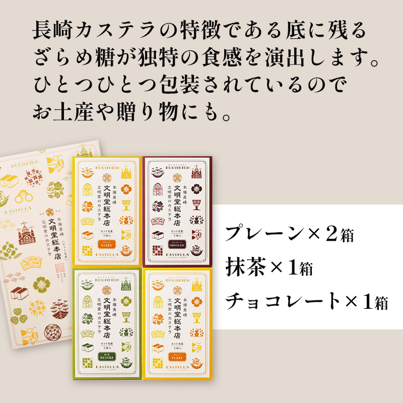 カットカステラ包装タイプ(プレーン×2箱、抹茶・チョコ各1箱)