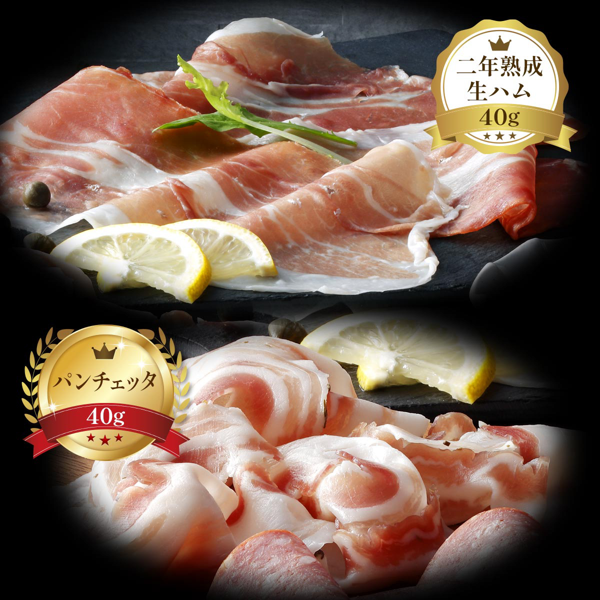 2年熟成生ハム40g、パンチェッタ40g、コッパ40g、コッホサラミ60g