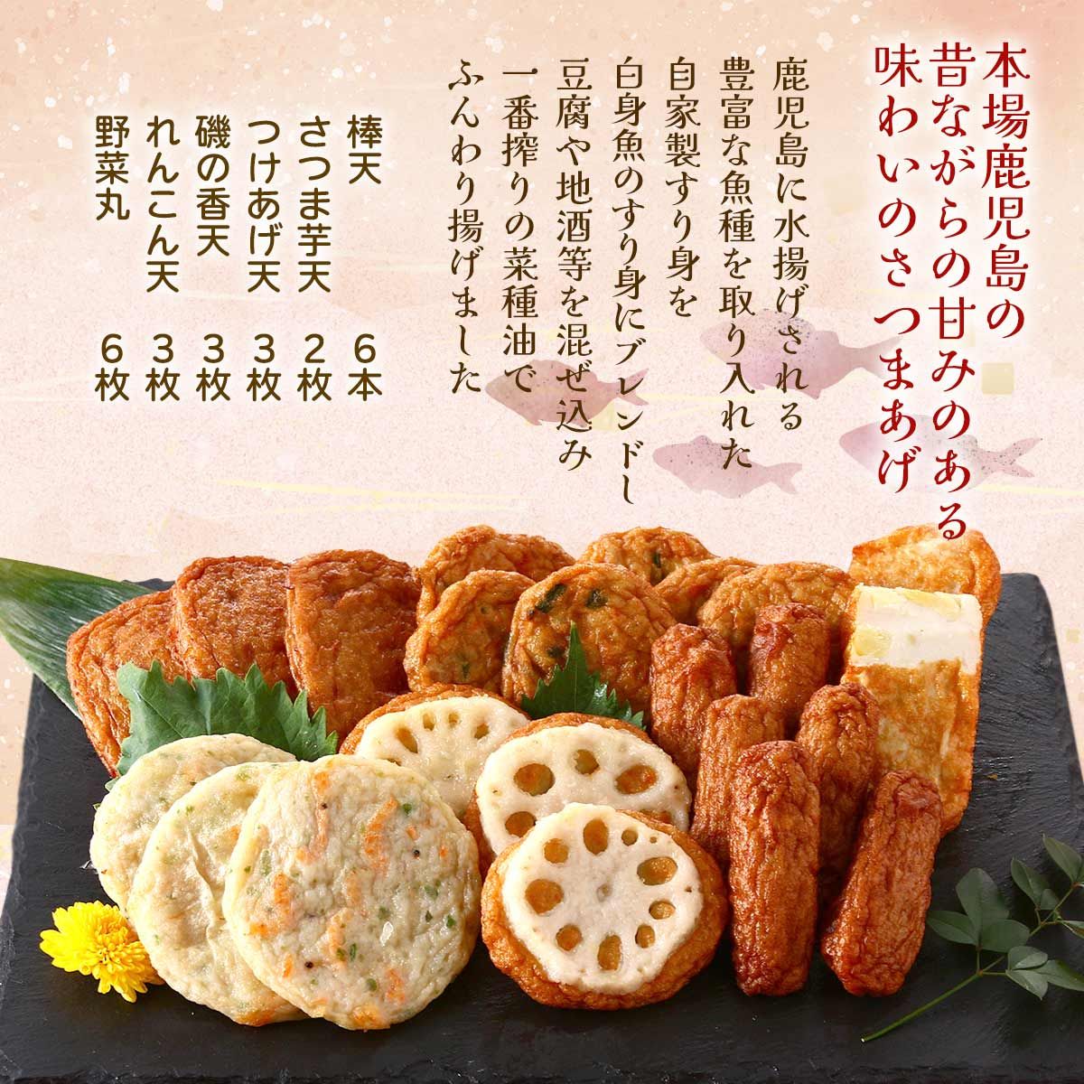さつま揚げ詰合せ 23個 ( 棒天 6本 さつま芋天 2枚 つけあげ天 3枚 磯の香天 3枚 れんこん天 3枚 野菜丸 6枚 ) 商品番号KY4978474302363