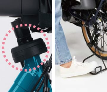 テコの原理でラクにスタンドが立てられるから、毎日の負担を軽減。