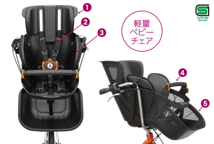 ・3年間盗難補償 3人乗り(幼児2人同乗)安全基準適合車 ・ベビーチェアサイズ 前後42cm・左右27cm・高さ46cm(ハイバック使用時)/32cm(ハイバック収納時) ※ベビーチェアのサイズはクッション含む内寸です。 安全のためお子さまにはヘルメットをかぶせましょう。 |