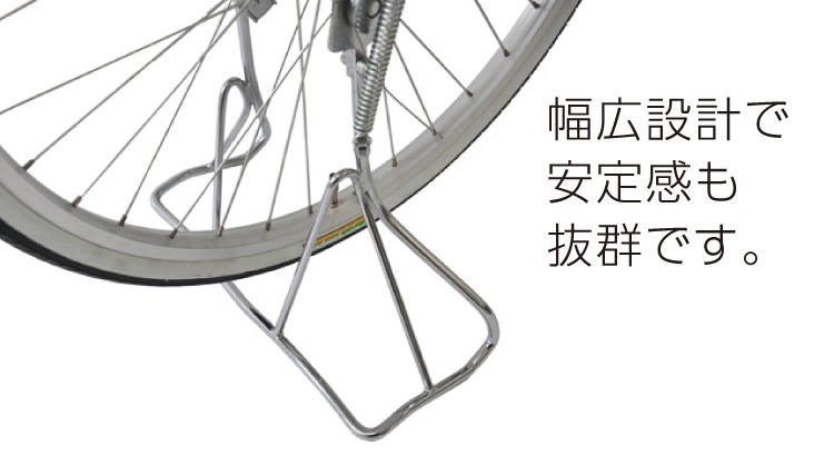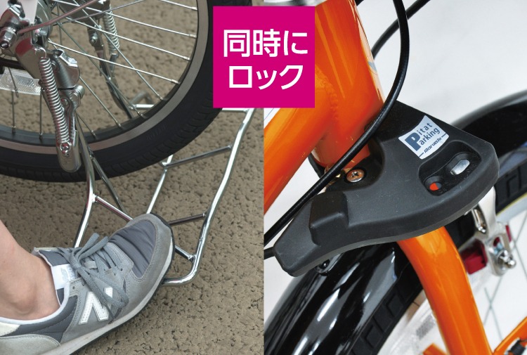 スタンドを立てると同時にハンドルがピタッと止まるオリジナル機構。