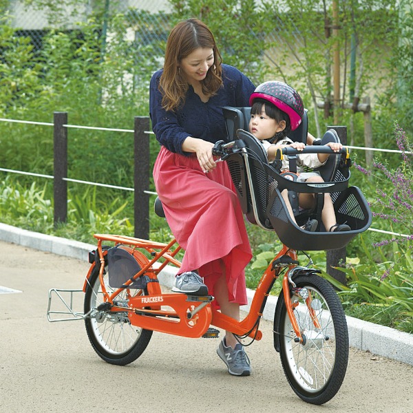 オリジナルの低床フレームは足つき性が良く、乗り降りしやすい設計になっています。また、丈夫なフレームが安定走行を実現します。もちろん幼児2人同乗基準適合車です。