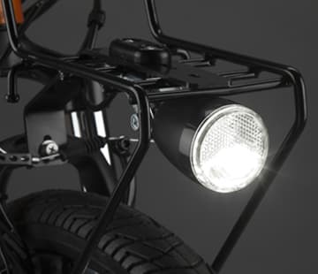 リフレクター一体式でワイドに照らす。オートライト機能付き。