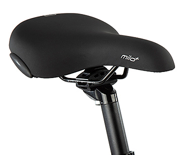 長距離走行でも疲れにくい幅172mmのワイドサドル(SELLE ROYAL MILO PLUS)。