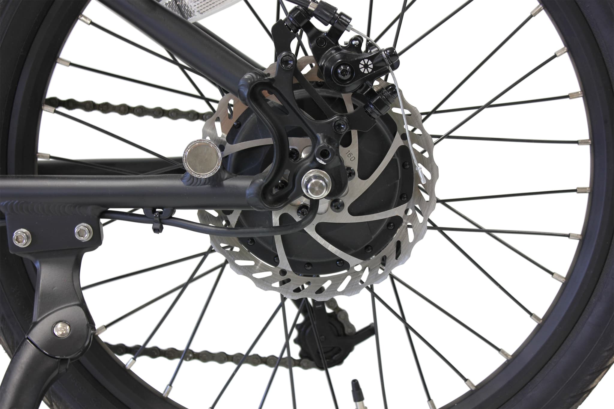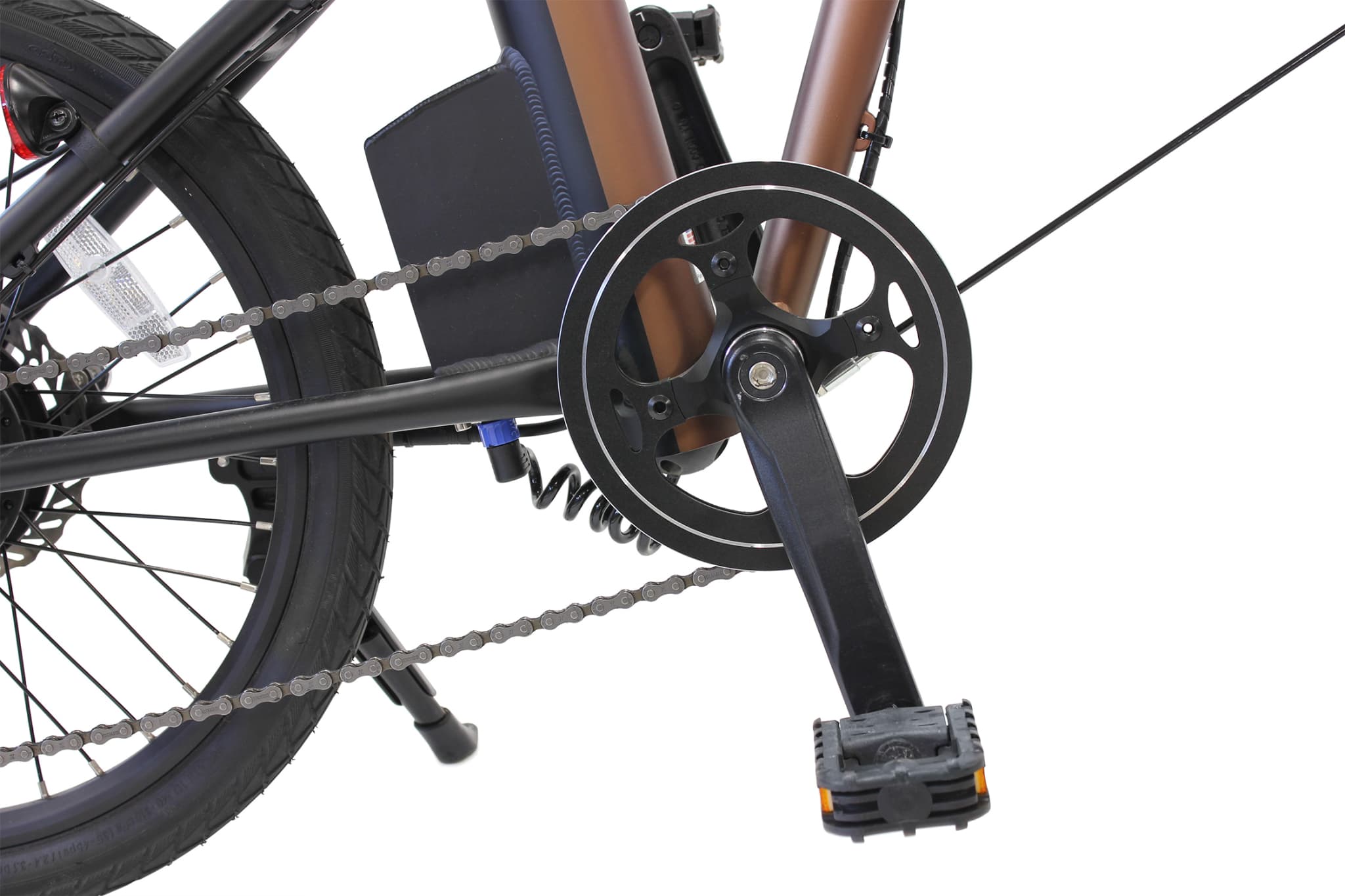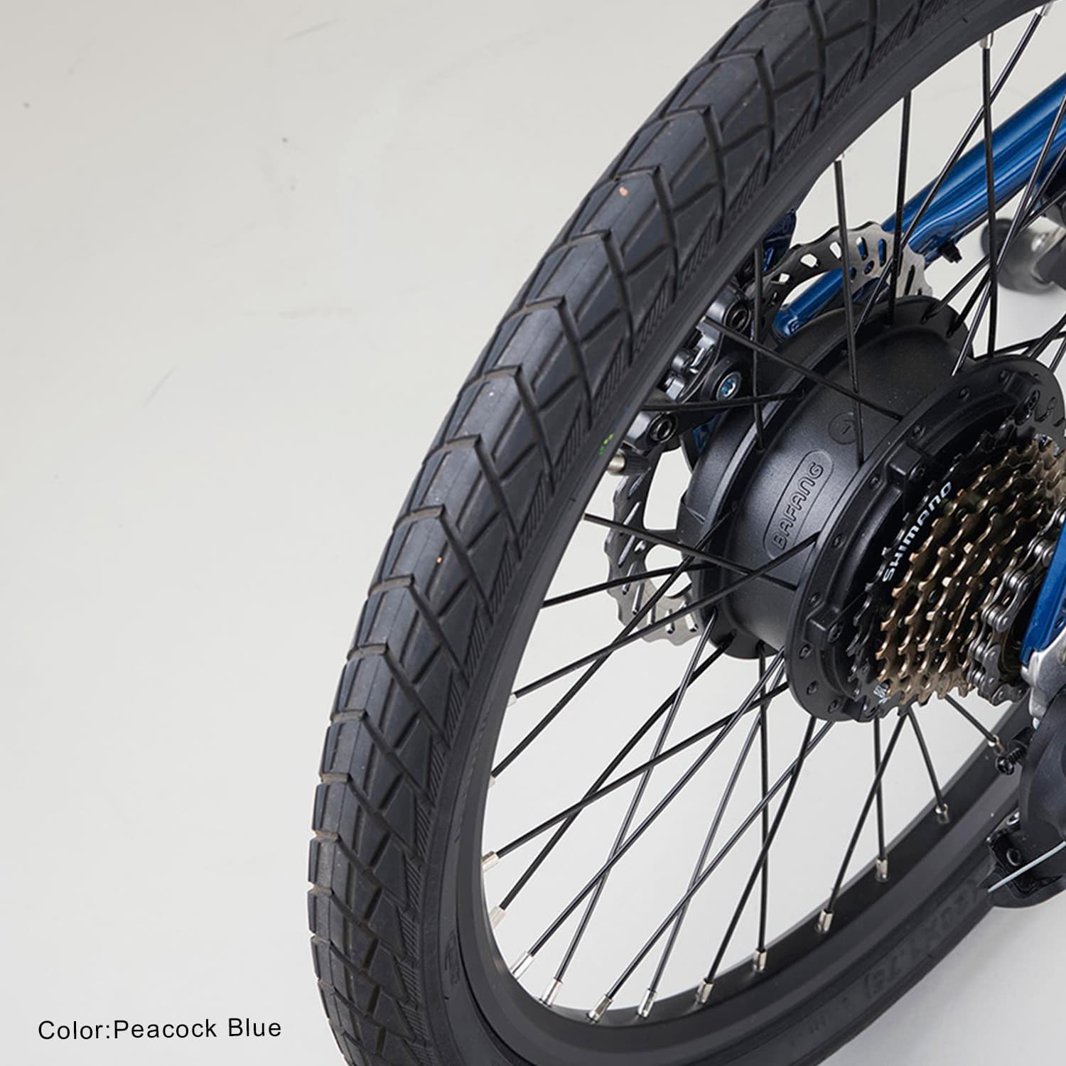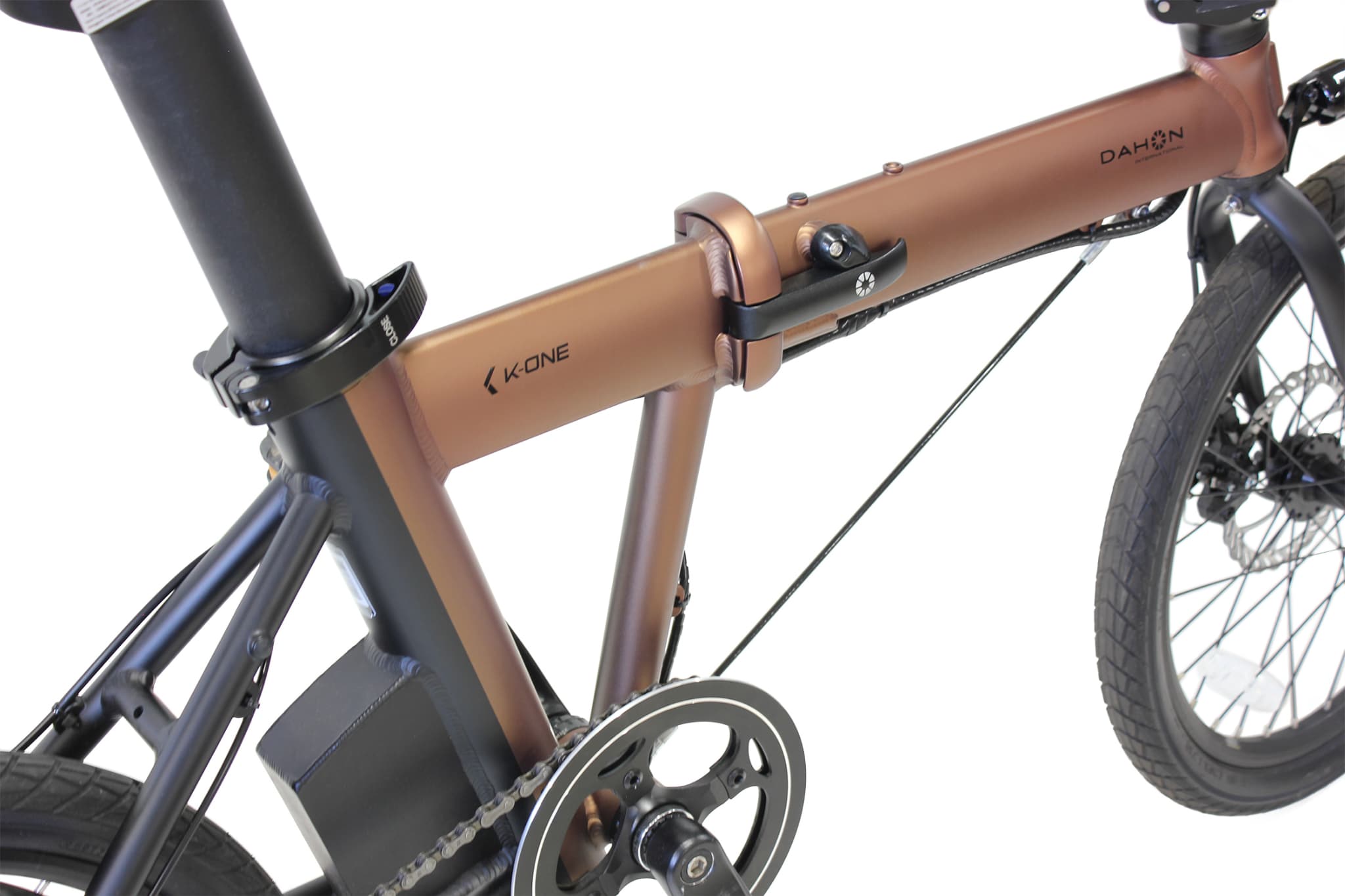 E-BIKEユニットで定評のあるBAFANG社製リアモーターを採用したK-ONEはDAHON本来の折り畳み自転車の基本性能はそのままにメカニカルディスクブレーキで安定した制動力を保持。さらに5モードのパワー選択と36V/9.5Ahのシートポスト型バッテリーで長距離ライドをサポート。