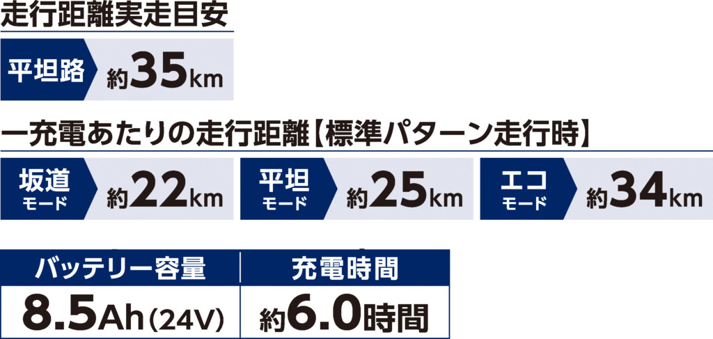 一充電当たりの走行距離は平坦モードで約25㎞