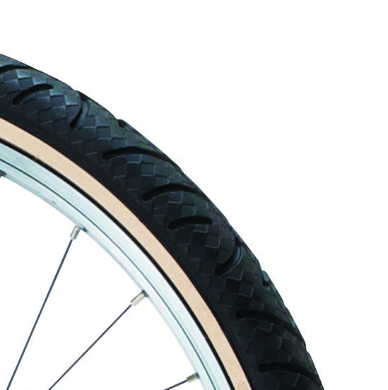かわいいミニベロモデルにマッチするおしゃれなチェッカー柄タイヤ。