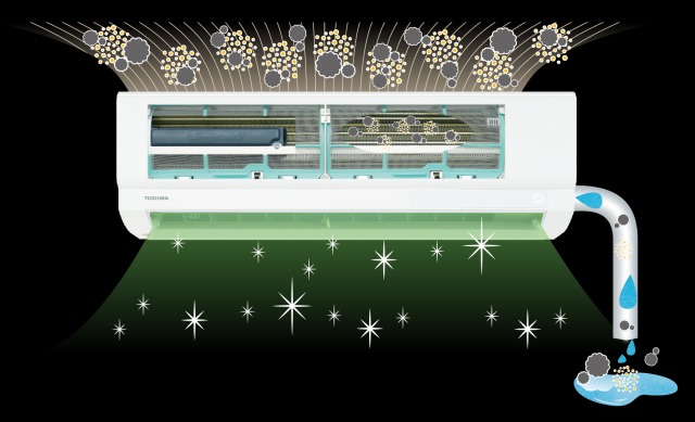 静電気の力でカビ・花粉などを集じんし、UV照射を行います。さらに集めた汚れは屋外へ自動排出します。 |