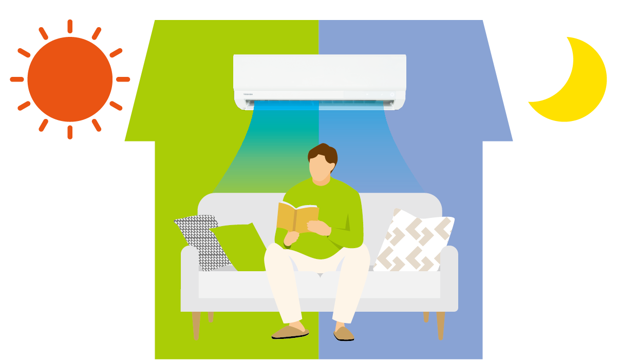 エアコン運転中に停電しても、復帰後に自動的に運転を再開します。就寝時や外出中など、万が一のときも安心できる機能です。 |