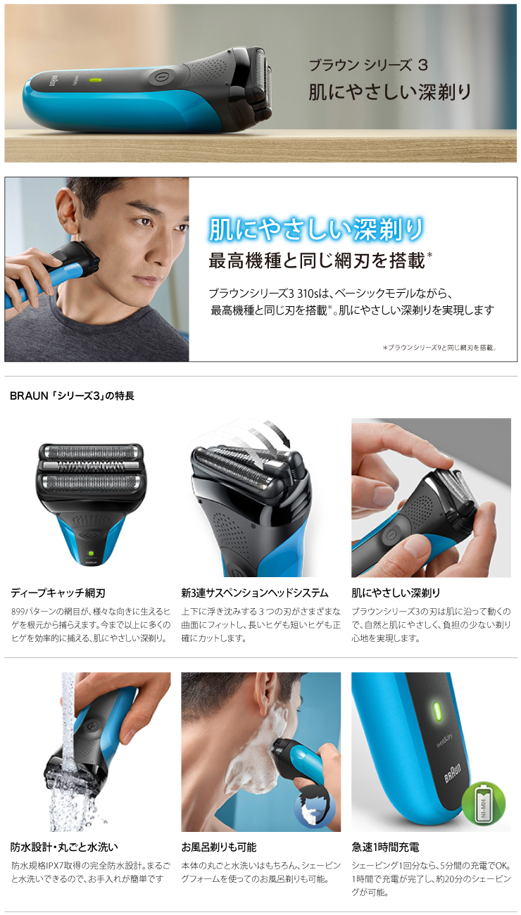 3カットシステムと3連サスペンションヘッドシステムで肌にやさしい深剃り。